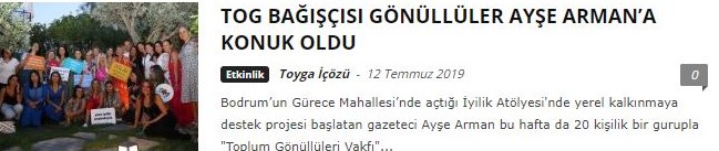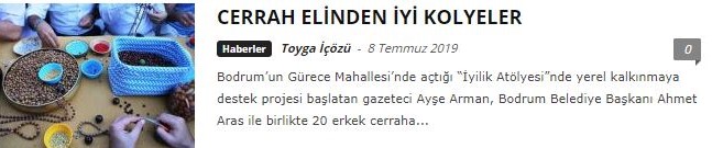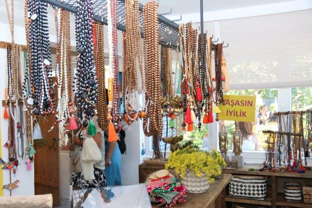 “Bu proje aslında yerel kalkınmaya destek projesi. Proje aynı zamanda da iyilik projesi olarak herkesi bir sosyal sorumluluğa davet projesi. Yaz sonuna kadar her hafta bir gün bir STK için yardım topladığımız, bunun karşılığında da kadın, erkek veya çocuk gözetmeksizin masaya oturup, dizdiğimiz boncuklarla bir kolye yapma projesi. Dernek veya vakıflara bağış yaparak isimlerini yazdıran 15 gönüllümüz ve köyden 5 kadınımız, kolyelerini yaparak, hem keyifli vakit geçiriyorlar, hem de sosyalleşiyorlar.