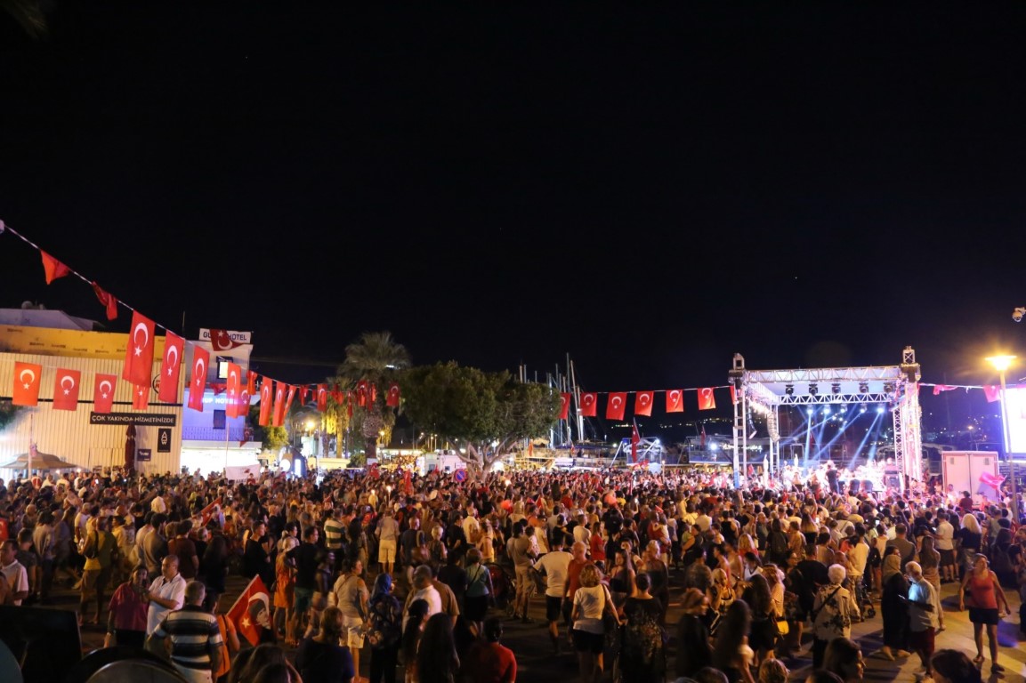 Bodrum Milta Marina’dan başlayan fener alayına, Bodrum Kaymakamı Bekir Yılmaz, Bodrum Belediye Başkanı Mehmet Kocadon, Bodrum Belediye Meclisi Üyeleri, siyasi parti temsilcileri, sivil toplum kuruluşu temsilcileriyle birlikte binlerce vatandaş katıldı.