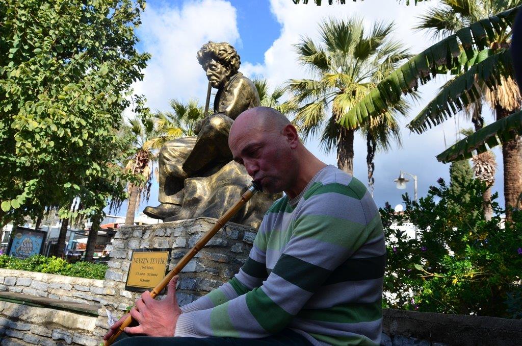 Başkan yardımcısı Emel Çakaloğlu ve diğer katılımcıların Bodrum Belediye Başkanı Ahmet Aras adına hazırlanan çiçeği heykele bırakmalarının ardından anma programı ney sanatçısı Hacı Gencer’in sergilediği ney taksimleri ile sona erdi.