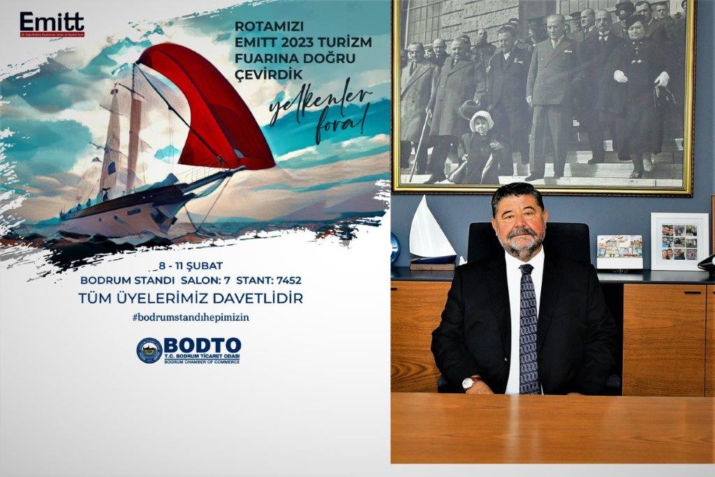 EMITT turizm fuarı öncesinde açıklama yapan Bodrum Ticaret Odası Başkanı Mahmut Serdar Kocadon “Odamızın hedef fuarları arasında yer alan EMITT’te yeniden Bodrum standı kuracak olmanın heyecanını yaşıyoruz. Hem üyelerimize fuarda kendilerini ait hissedebilecekleri toplantı ortamı sunmak hem de Bodrum’u temsil ederek prestijli işbirlikleri geliştirmek için hazırladığımız standımıza tüm üyelerimizi ve tüm Bodrum severleri bekliyoruz.” dedi.
