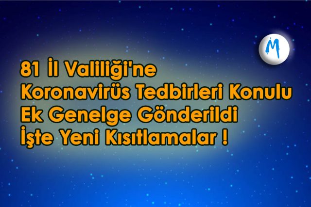 Sağlık Bakanlığı Koronavirüs Bilim Kurulunun Tavsiye Kararı doğrultusunda İçişleri Bakanlığı, 81 il valiliğine Covid-19 Tedbirleri konulu ek genelge gönderdi.