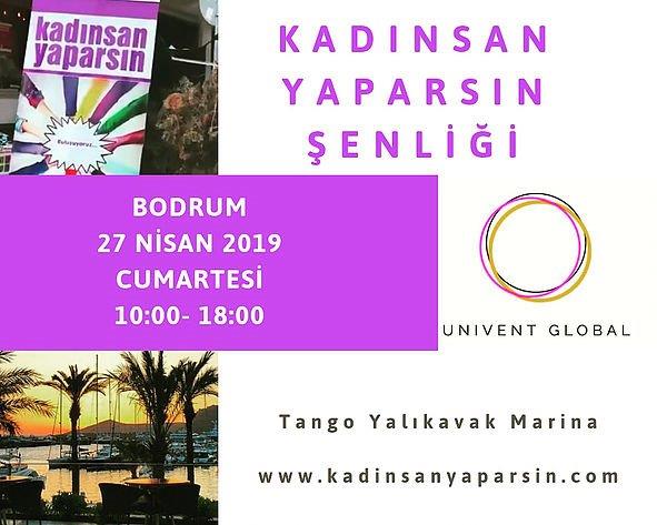 27 Nisan 2019 Cumartesi günü saat 10:00- 18:00 arasında Bodrum Yalıkavak Marina Tango Restoran’da düzenlenecek olan KADINSAN YAPARSIN ŞENLİĞİ’nde farklı şehirlerden 100’e yakın kadın girişimci standları ile yer alacak.