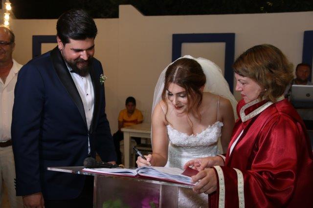 Rİze’de Alkan ailesinin yakınları ve dostlarının da katılımıyla gerçekleşen ilk törenin ardından Bodrum’da kıyılan nikah ile dünya evine giren Damla-Ege Diken çiftinin nikah şahitliklerini Mustafa Dağlı, Hasan Ayaz ve Canan Yazıcı’nın yaptı.