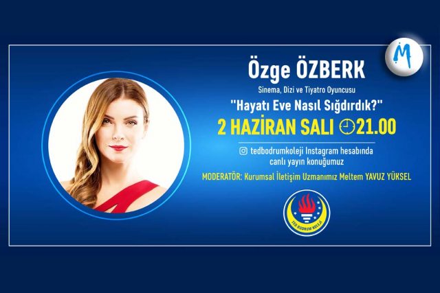 “Babam ve Oğlum”, “G.O.R.A”, “A.R.O.G” “Çemberimde Gül Oya”, “Kalbimdeki Deniz”, “Bir Demet Tiyatro” gibi birçok film, dizi ve tiyatro oyunundan tanıdığımız başarılı oyuncu Özge Özberk, 2 Haziran Salı günü saat 21.00’de TED Bodrum Kolejinin kurumsal instagram hesabından (@tedbodrumkoleji) canlı olarak gerçekleştirilecek yayına konuk olacak.