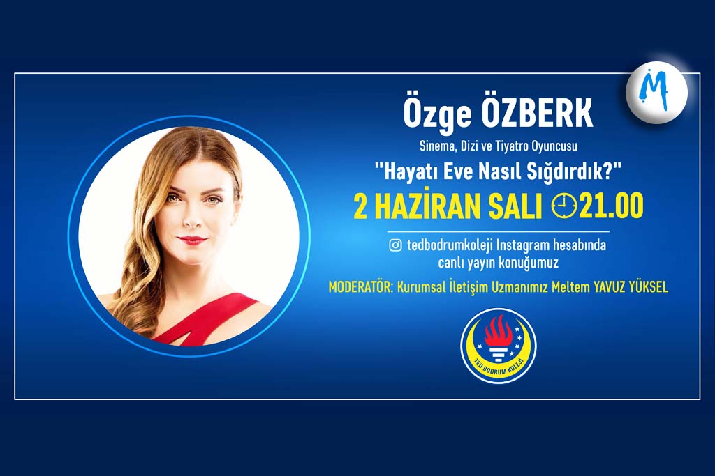Başarılı sinema, tiyatro ve dizi oyuncusu Özge Özberk, TED Bodrum Kolejinin instagram canlı yayın konuğu olacak.