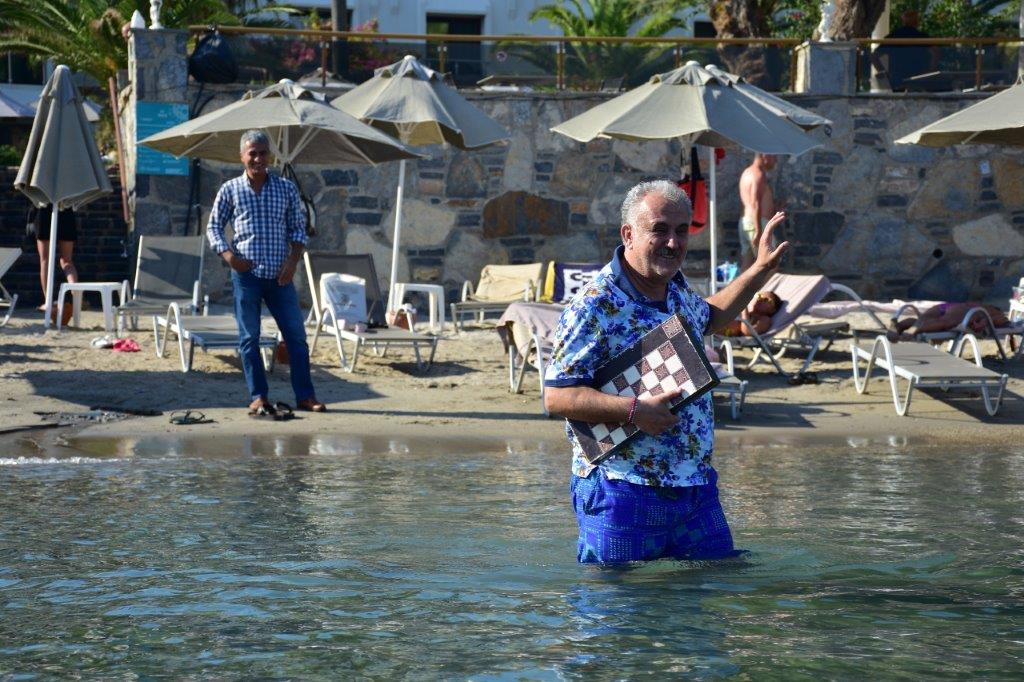 Sanatçı Safiye Soyman’ın hayat arkadaşı Faik Öztürk, önceki gün Azka Otel’in sahibi Bülent Kaya ile iddialı bir tavla maçı yaptı. İki saat süren çekişmeli tavla oyunundan sonra Bülent Kaya’ya yenilen ve iddiayı kaybeden Faik Öztürk, tavlayı koltuğunun altına alıp, tişörtle Azka Otel’in plajından denize girdi. Meraklı bakışlar arasında kaybettiği tavlayı suda dövdü. Daha öncede tavlada Kaya’ya yenilen Faik Öztürk, girdikleri iddiaya göre yakın dostunun koleksiyonuna yeni takım elbisesini alacak seçimi de ünlü sanatçı Seda Sayan yapacak.