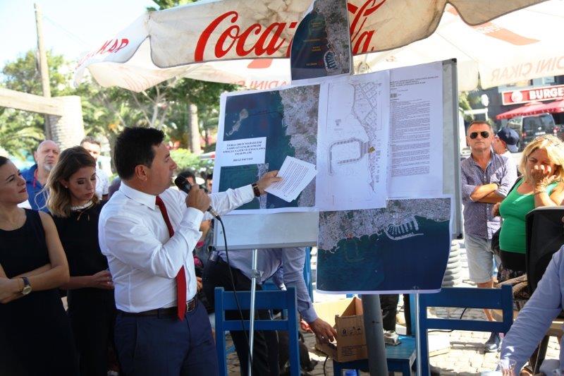 Bodrum Belediye Başkanı Ahmet Aras, 2017’de tahsisi yapılan ve bir takım plan değişiklikleri ile son aşamada dev bir liman projesine dönüşen yatırım süreci ile ilgili olarak vatandaşları bilgilendirdi. İlk önceleri sadece yönetim binası ve halkın kullanımına açık sahil yapılanması olarak konuşulan projenin yapılan plan değişiklik teklifleriyle devasa bir limana dönüştüğünü anlatan Başkan Aras, Turgutreis sahili yürüyüş yolunu ve denizini halkın kullanımına kapatacak proje ile ilgili Belediye’nin çekincelerini anlattı.