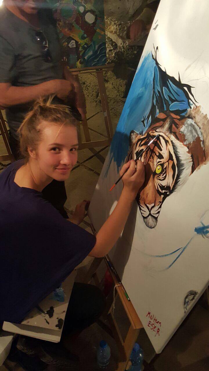 Hüseyin Turgut Karabağlı Ortaokulu öğrencileri düzenlenen bir yıl sonu sergisi ile sergiyi gezenleri adeta büyüledi. Haluk Elbe Sanat Galerisi’nde Görsel Sanatlar Öğretmeni Fatma Yaşam Akkuş’un rehberliğinde düzenlenen ve 5-6-7-8’inci sınıf öğrencilerinin eserlerinden derlenen çalışmaların yer aldığı sergiyi, turistler de ilgiyle izledi. Okul öğretmenlerinden Ayşegül Ata’nın yaptığı açıklamada yerli ve yabancı turistlerin ilgi gösterdiği sergide bazı eserlerin yabancı turistler tarafından beğenilerek, satın almak istemelerinden duyduğu gururu öğrencileriyle paylaşmanın verdiği mutluluğu dile getirdi. Okul Öğrencilerinden Meltem Eser’in canlı performansla çizdiği Kaplan figürü de sergiyi gezenlerin ilgisini çekiyor. 26 Mayısta Hüseyin Turgut Karabağlı Ortaokulu öğrencilerinin eserlerinin yer aldığı 2016-2017 eğitim öğretim yılı sergisi bugün saat 17.00’a kadar gezilebilecek.